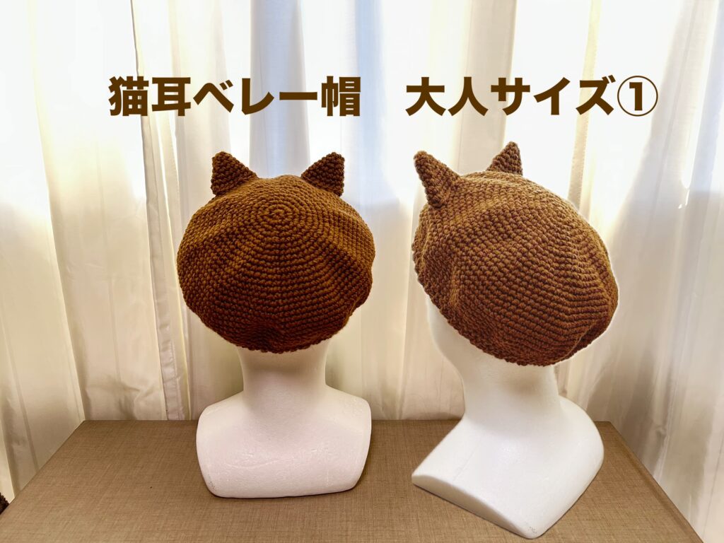 【かぎ針編み】①猫耳ベレー帽子大人サイズ