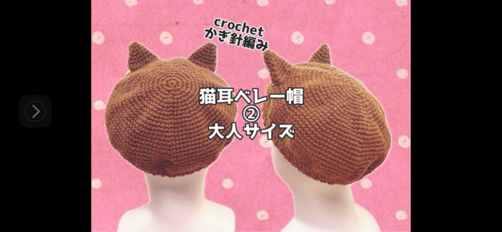 【かぎ針編み】②猫耳ベレー帽子大人サイズ